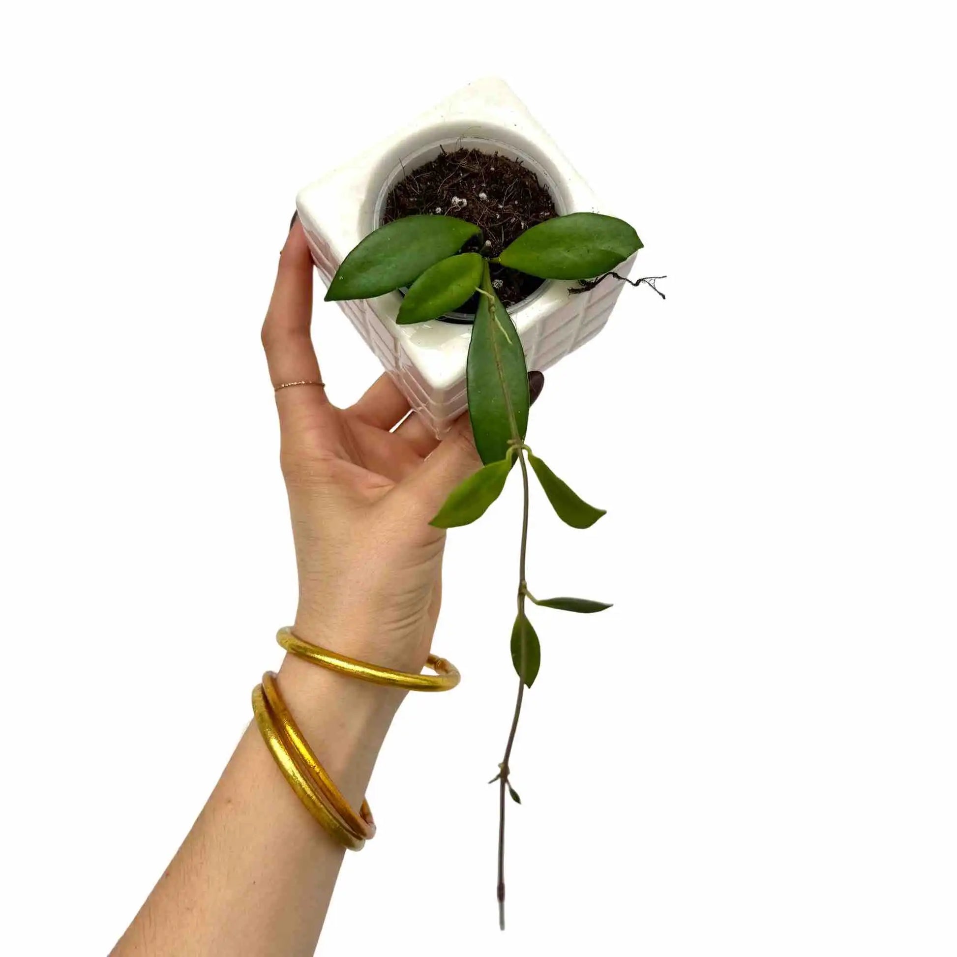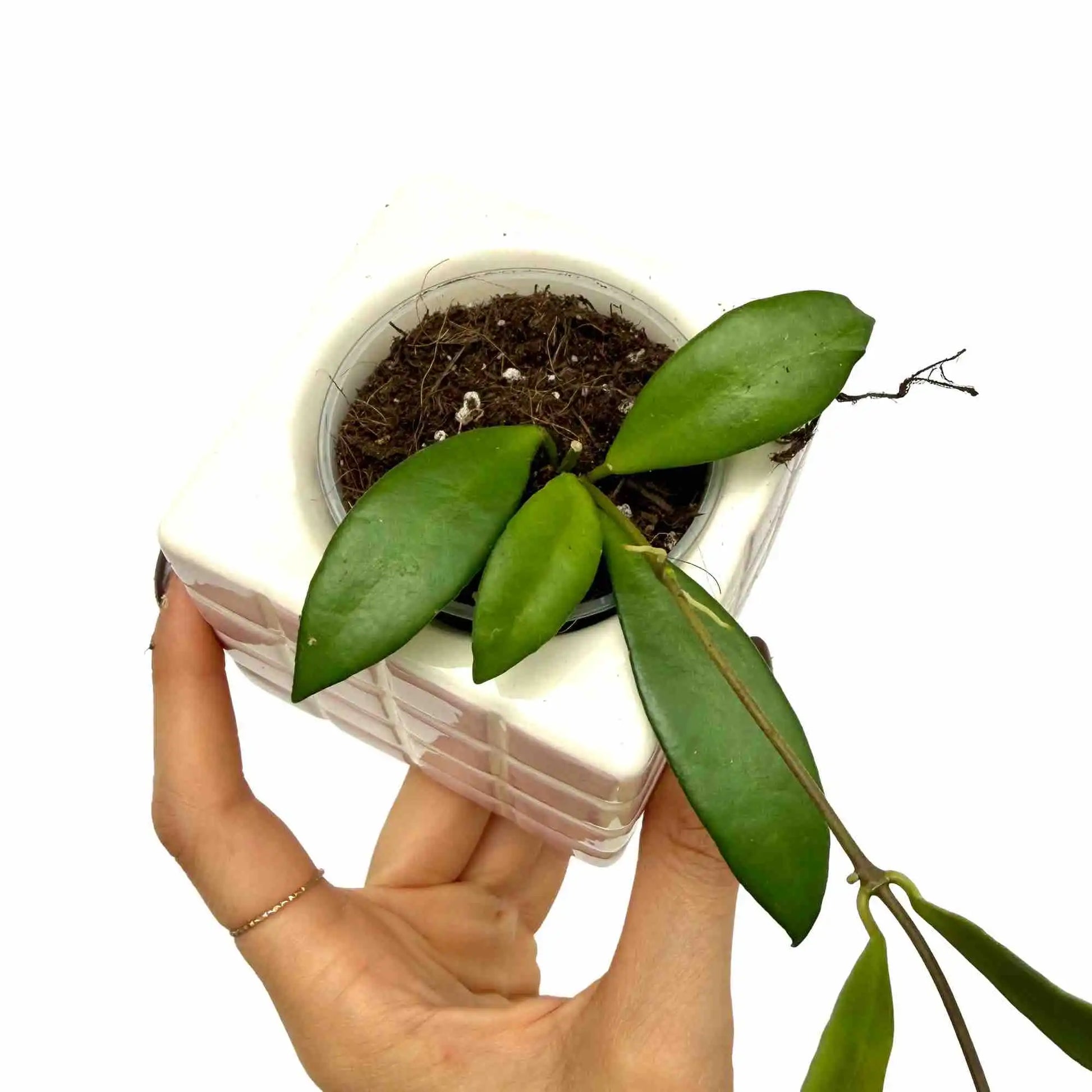 Le Hoya Noona, aussi appelé liane de cire ou plante de porcelaine, est une espèce tropicale grimpante de la famille des Apocynaceae, originaire des forêts humides d'Asie du Sud-Est. Cette plante se distingue par ses feuilles épaisses à la texture veloutée et par sa capacité à produire de discrètes ombelles florales à la floraison parfumée, caractéristiques des Hoya les plus recherchés. Son feuillage charnu d'un vert profond lui confère une élégance sobre qui s'intègre à tout style décoratif.