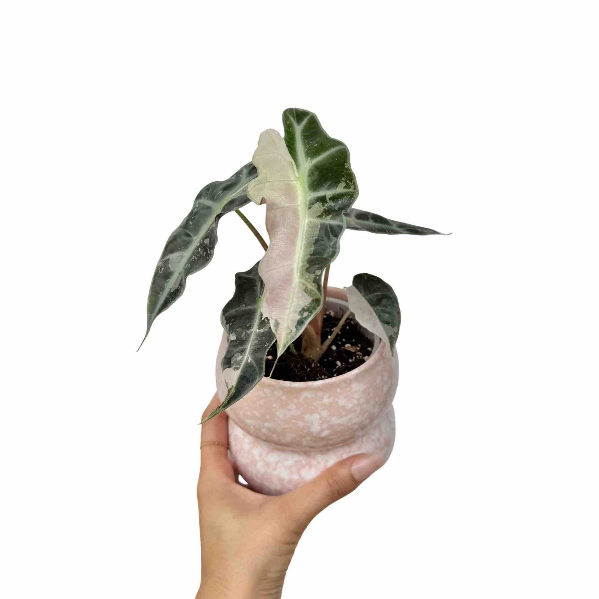 Ajoutez dès maintenant l'Alocasia Polly Variegata à votre collection et offrez à votre intérieur une touche de jungle tropicale rare et raffinée.